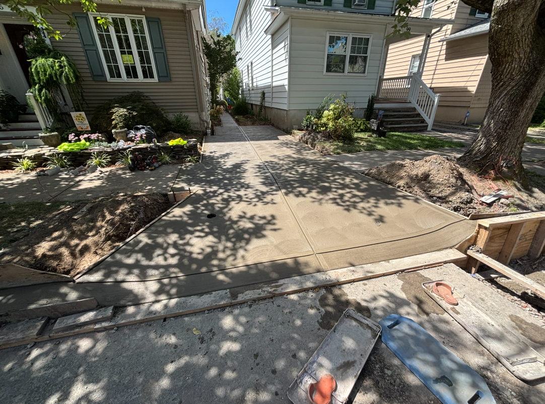 Complete installation of a new concrete driveway with a 20 foot curb for a residential customer on Church St in Kingston, PA. Our team excavated the existing surface, installed proper base materials, formed and poured reinforced concrete, and finished with a mag swirl texture for optimal traction and curb appeal.