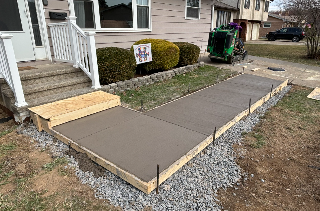 Professional installation of a new concrete sidewalk for a residential property. Our team excavated the existing pathway, prepared a proper gravel base for drainage, installed reinforced concrete with control joints, and finished with a broom texture for optimal traction and safety. The project enhanced curb appeal while providing a durable, ADA-compliant walkway.